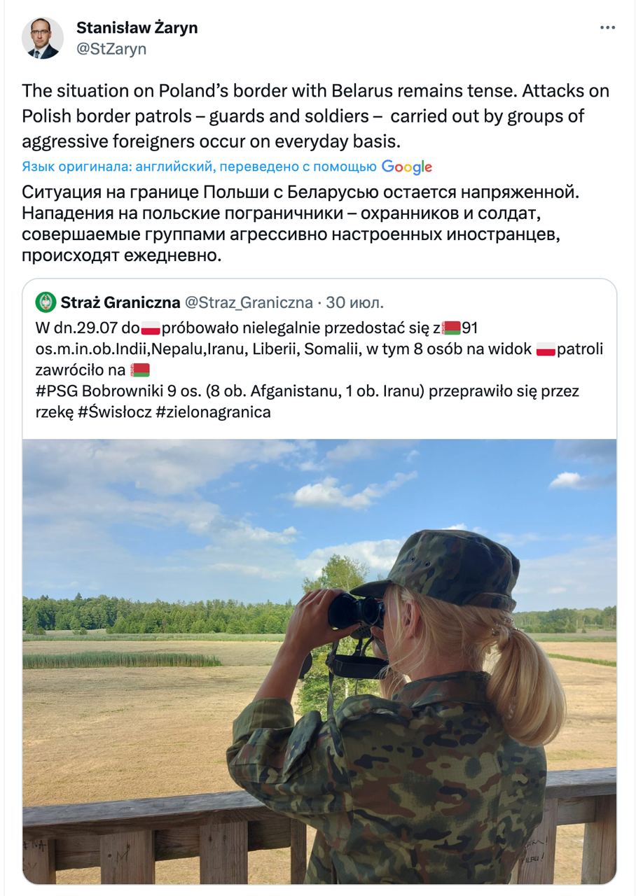Ситуация на границе остается напряженной, "группы агрессивных иностранцев" ежедневно нападают на польских пограничников.