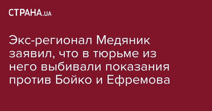 Бывший депутат Верховной Рады от фракции Партии регионов Владимир Медяник заявил, что когда он находился под арестом в следственном изоляторе СБУ, потому что Генеральная прокуратура принуждала его дать показания против сопредседателя фракции "Оппозиционный блок" в Верховной Раде Юрия Бойко, депутата от ОБ Сергея Дунаева и экс-главы фракции Партии регионов Александра Ефремова.