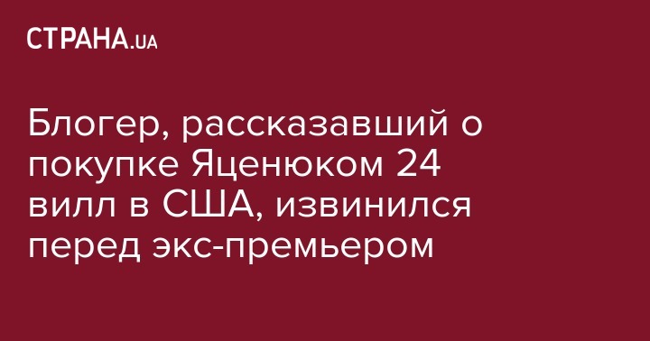 Блогер, рассказавший о покупке Яценюком 24 вилл в США, извинился перед экс-премьером