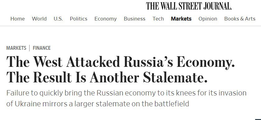 Об этом пишет The Wall Street Journal в статье "Запад атаковал российскую экономику. Результат – еще один тупик".