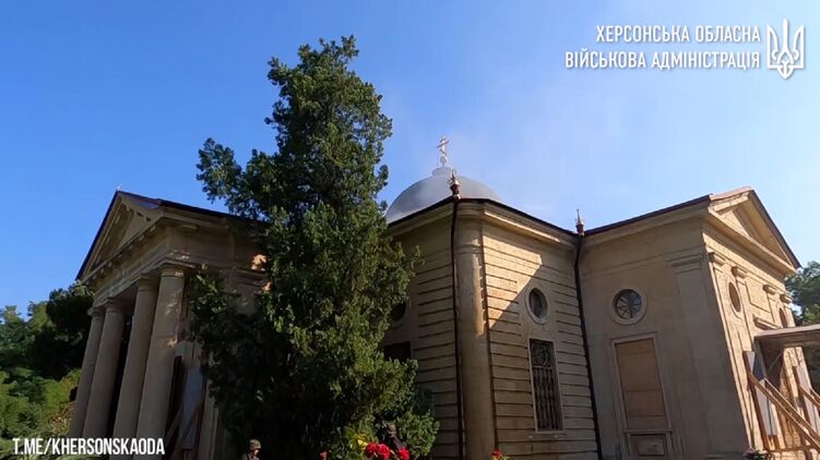Херсонская ОВА публикует видео с последствиями утреннего обстрела Екатерининского собора