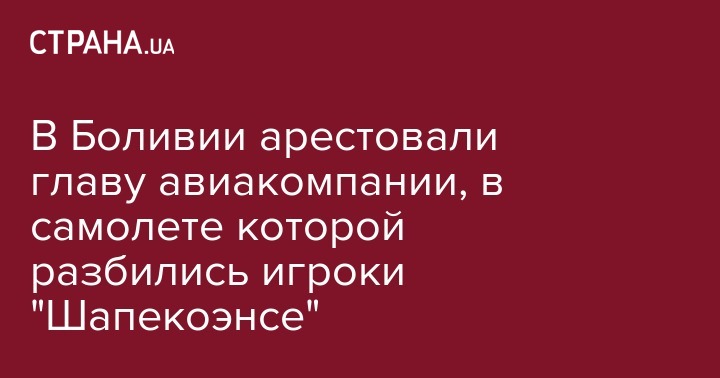 Генеральный директор авиакомпании Lamia Густаво Варгаса, самолет которой с футболистами "Шапекоэнсе" потерпел крушение, арестован в Боливии в рамках расследования происшествия. Об этом сообщает The Guardian.