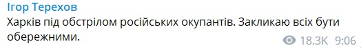 "Профильные службы выехали на обследование последствий обстрелов в Холодногорском районе", - написал Синегубов.