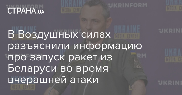В Воздушных силах объяснили, почему вчера заявили о пуске ракет со стороны Беларуси. По уточненным данным, это мог быть "Кинжал", запущенный из РФ, но летевший через белорусскую территорию.