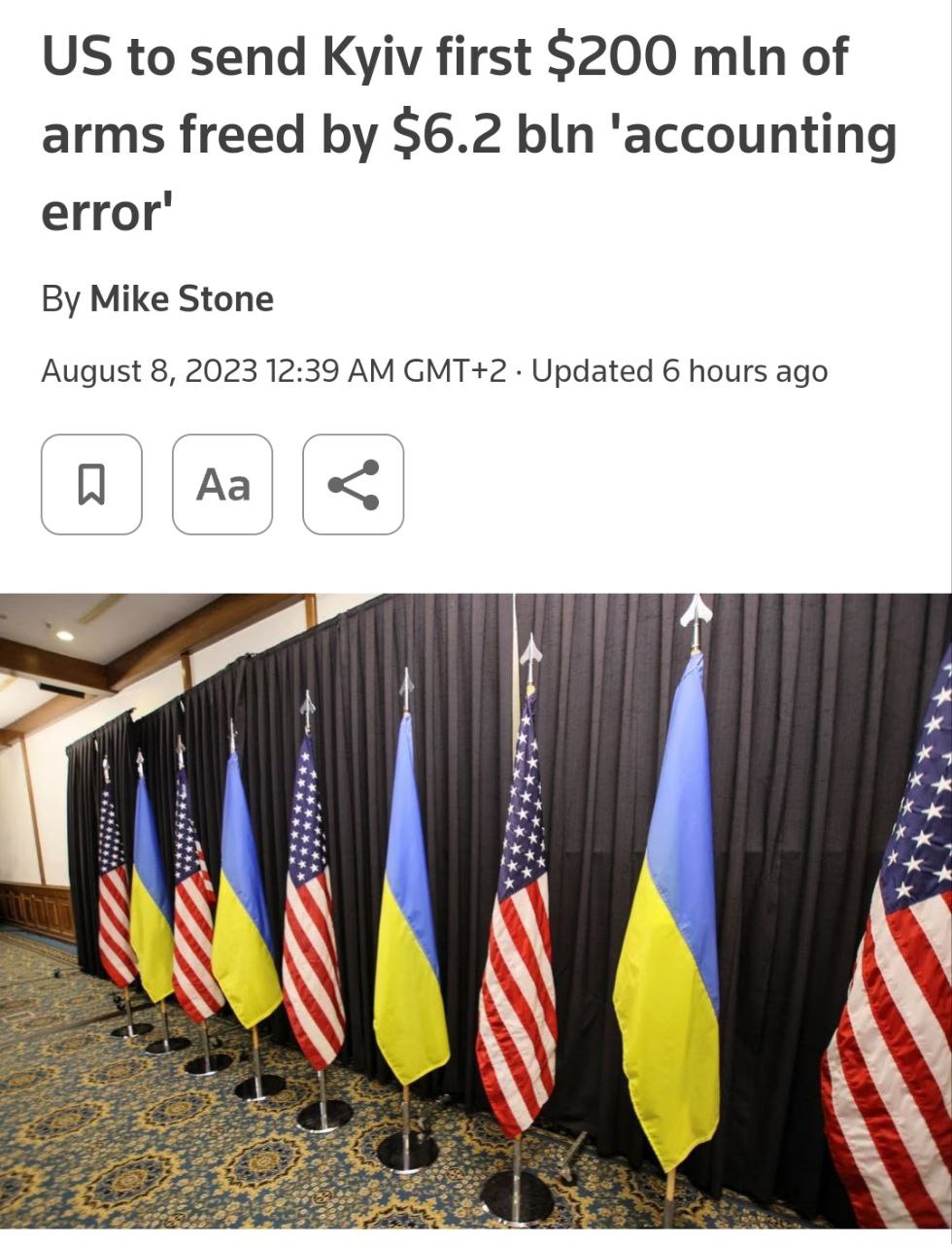 Недавно в США заявили, что по ошибке завысили стоимость отправленного Украине оружия на эту сумму. И теперь ее потратят на поставки для ВСУ.