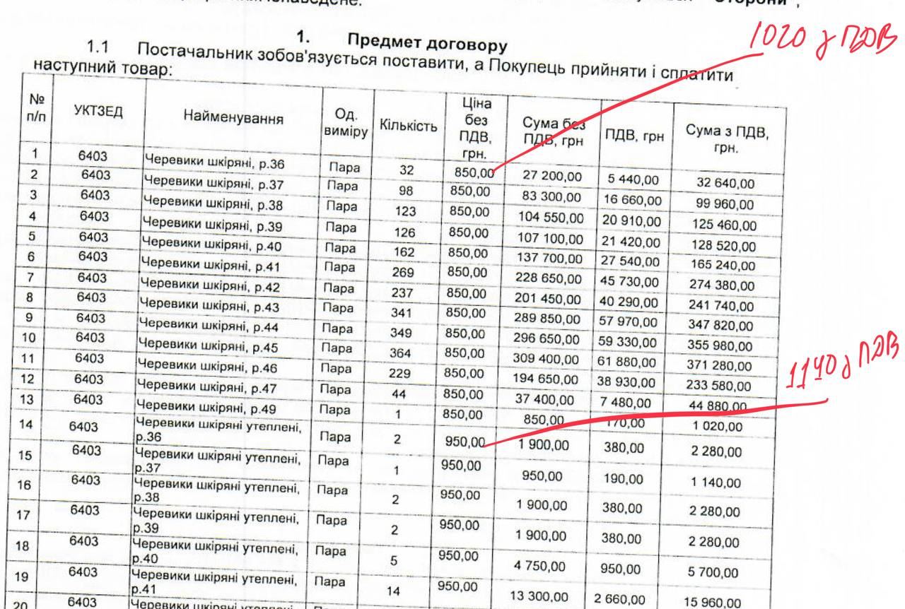 Например, состоялся тендер на 3 млн грн на закупку 3021 пар ботинок по 850 гривен.