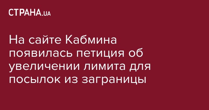 На сайте Кабинета Министров Украины появилась петиция 41/000820-16еп о повышении предельной границы беспошлинной пересылки товаров в международных и экспресс-отправлениях с 150 до 220 евро.