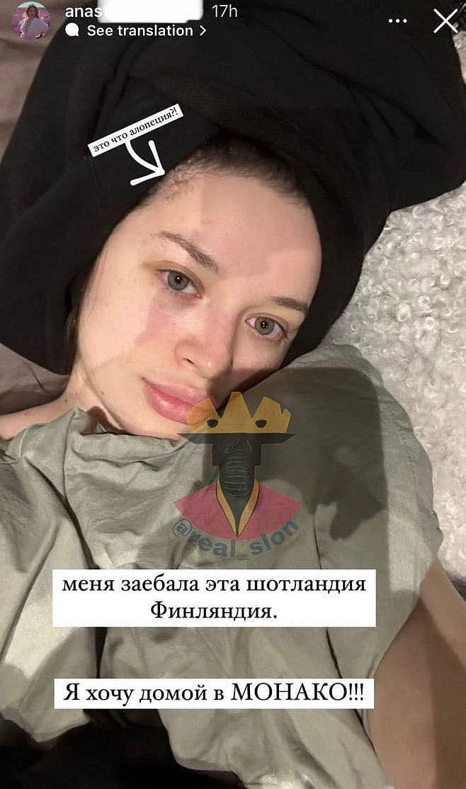 "Меня за@бала эта Шотландия-Финляндия. Я хочу домой, в Монако", - написала Настя в Инстаграме и показала грустное селфи.