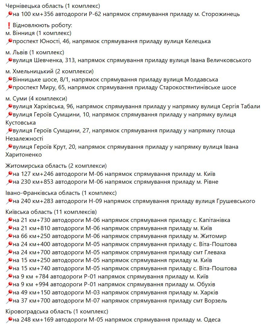 Из них 19 - уже новых, которые заработают впервые. Остальные были отключены после начала войны, сообщает Патрульная полиция.