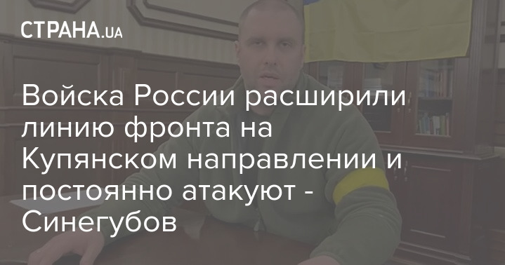 Войска России расширили линию фронта на Купянском направлении и постоянно атакуют - Синегубов