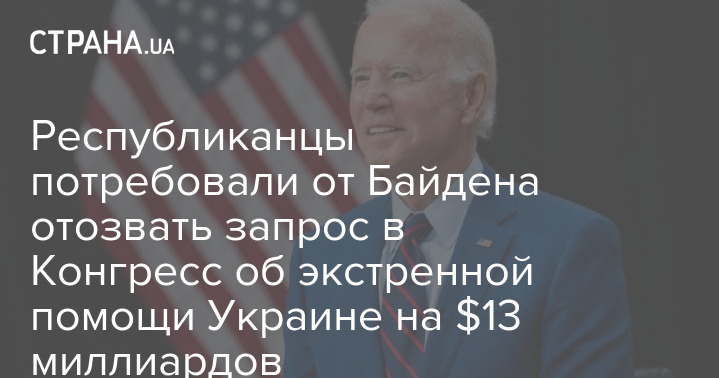Республиканцы потребовали от президента США Джо Байдена отозвать запрос в Конгресс о дополнительном финансировании для Украины.