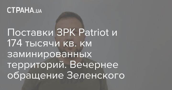 Поставки ЗРК Patriot и 174 тысячи кв. км заминированных территорий. Вечернее обращение Зеленского