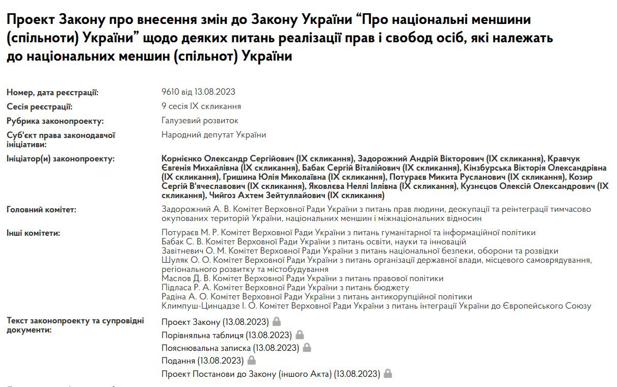 Сегодня несмотря на выходной день в Верховной Раде появился проект изменений к закону о национальных меньшинствах. Его авторами в основном выступили "слуги народа": Александр Корниенко, Евгения Кравчук, Сергей Бабак, Никита Потураев и другие.