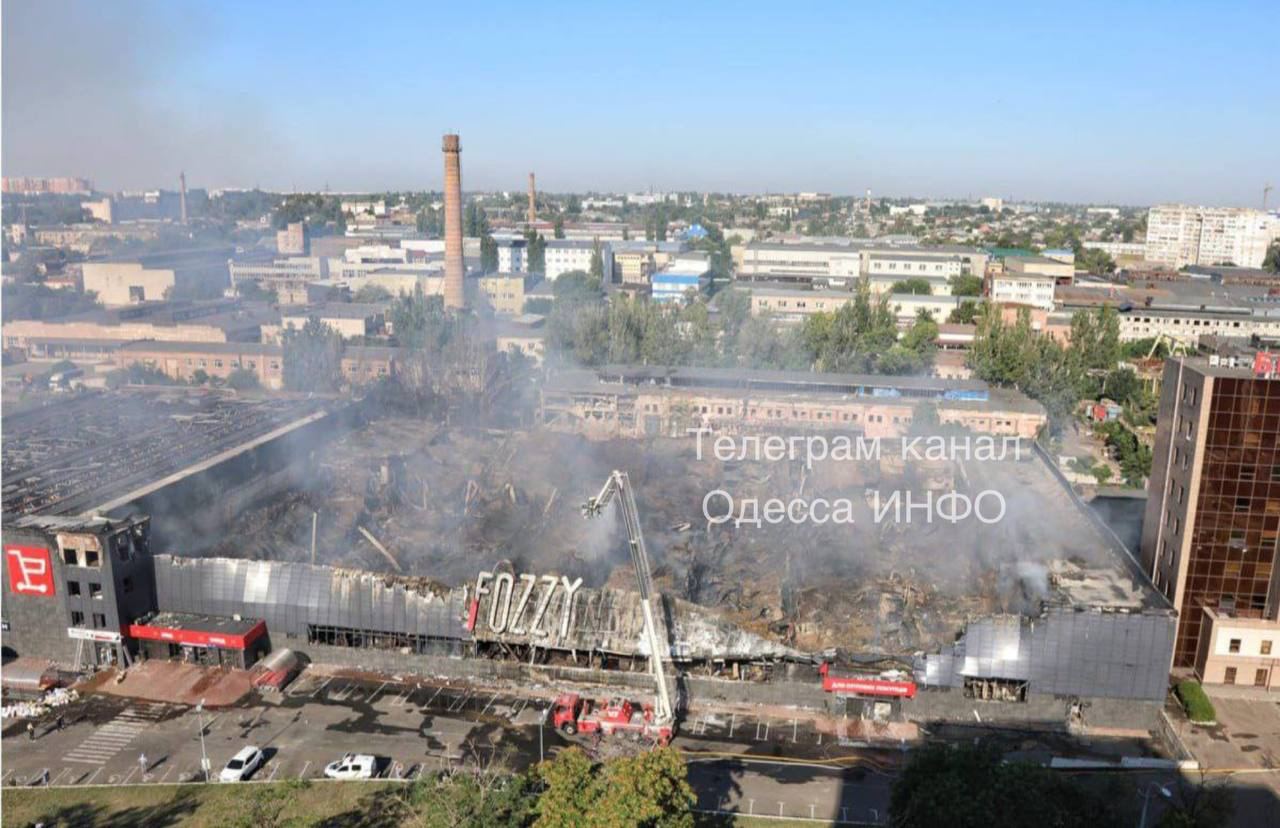 08.20 Утреннее видео сгоревшего супермаркета "Фоззи" в Одессе.