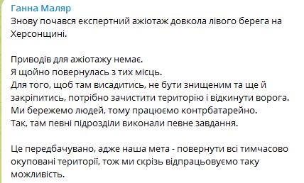 "Для того чтобы там закрепиться, нужно вытеснять врага, зачищать территорию", - сказала Маляр.