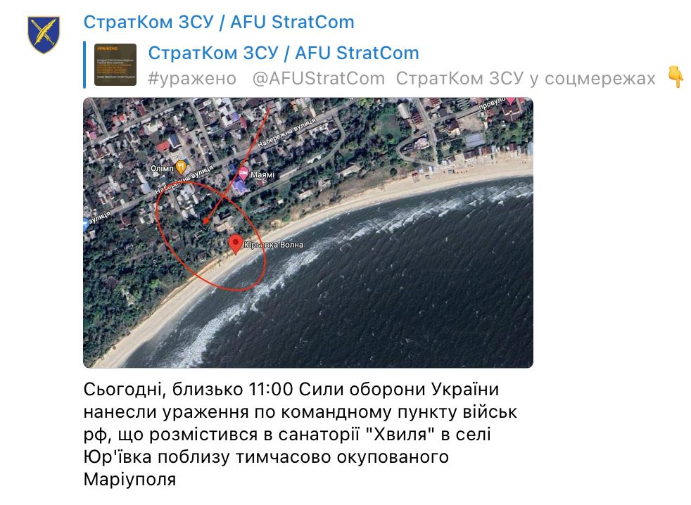 Стратком заявляет, что был поражен командный пункт войск РФ в санатории "Волна".