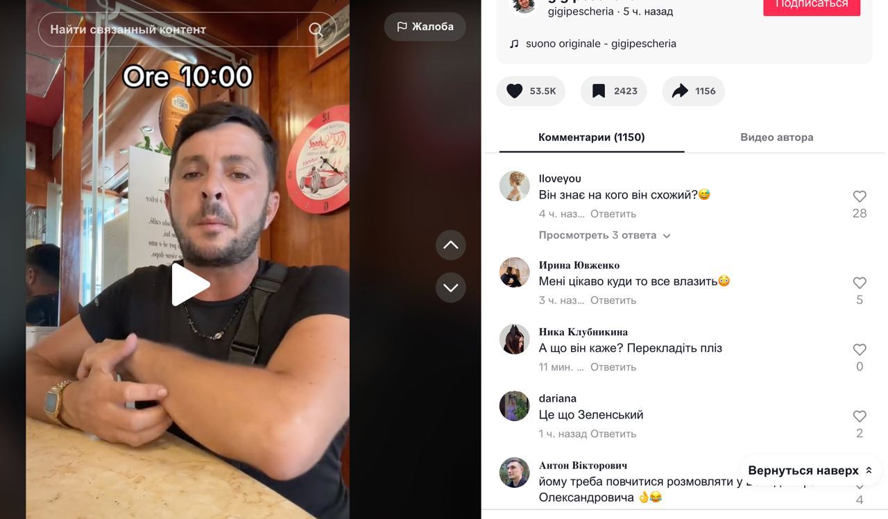 В Неаполе живет двойник Зеленского. Он продает морепродукты и очень популярен в сети TikTok