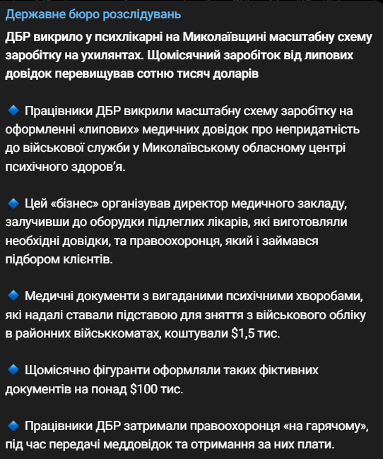 В Николаевском областном центре психического здоровья разоблачили масштабную схему оформления фальшивых справок для уклонистов от мобилизации. Их оформляли как психически больных, причем тариф за эту услугу был в разы меньше, чем в военкоматах.