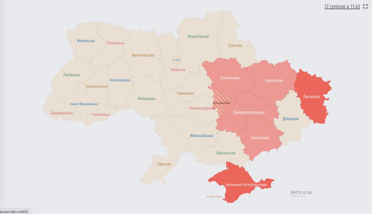17.52 По всей Украине объявлена воздушная тревога. Она связана со взлетом МиГ-31К в РФ.