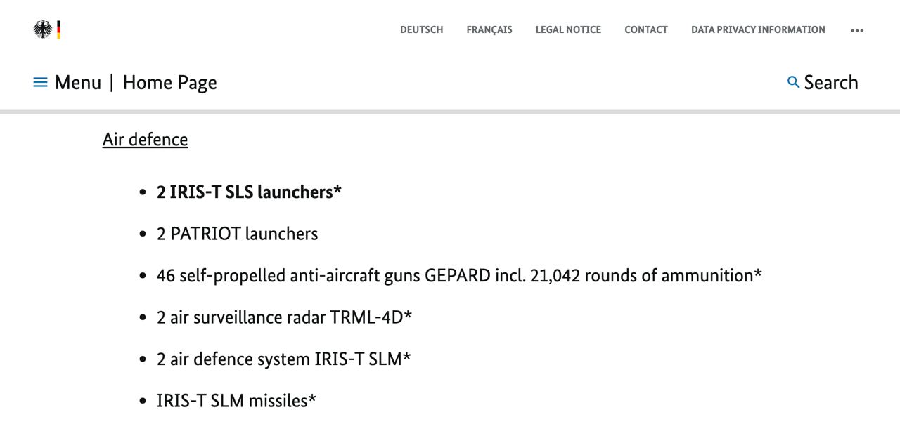 13.30 Германия передала Украине две дополнительные пусковые установки системы ПВО IRIS-T модификации SLS.