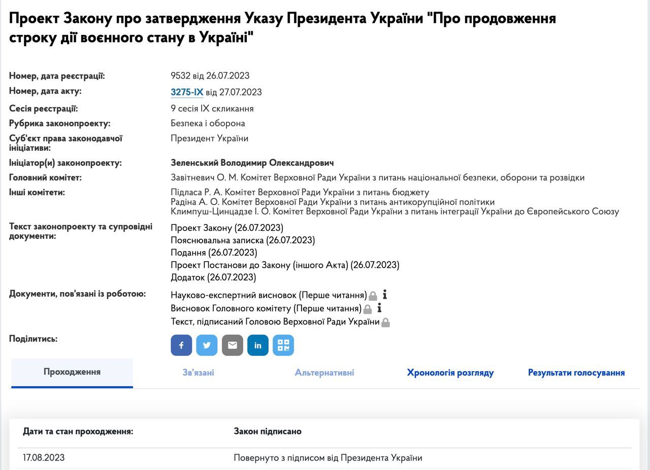 Напомним, в конце июля Верховная Рада продлила действие военного положения и всеобщей мобилизации еще на три месяца - до 15 ноября 2023 года.