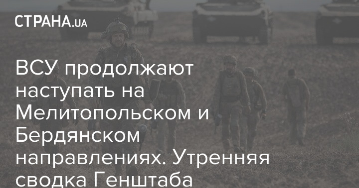 Силы обороны Украины продолжают вести наступательную операцию на Мелитопольском и Бердянском направлениях.