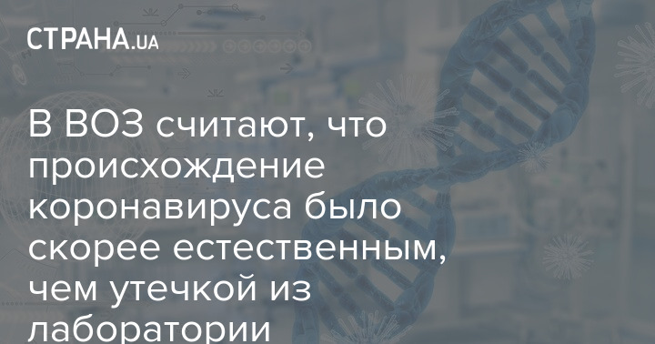 В ВОЗ считают, что происхождение коронавируса было скорее естественным, чем утечкой из лаборатории