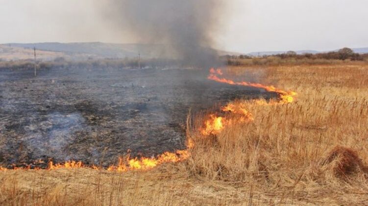 После обстрела загорелась сухая трава. Иллюстративное фото