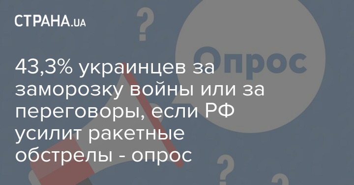 Относительное большинство опрошенных украинцев (43,3%) в том или ином варианте выступили за прекращение боевых действий, если РФ усилит ракетные обстрелы украинских городов, которые приведут к увеличению жертв среди гражданского населения.