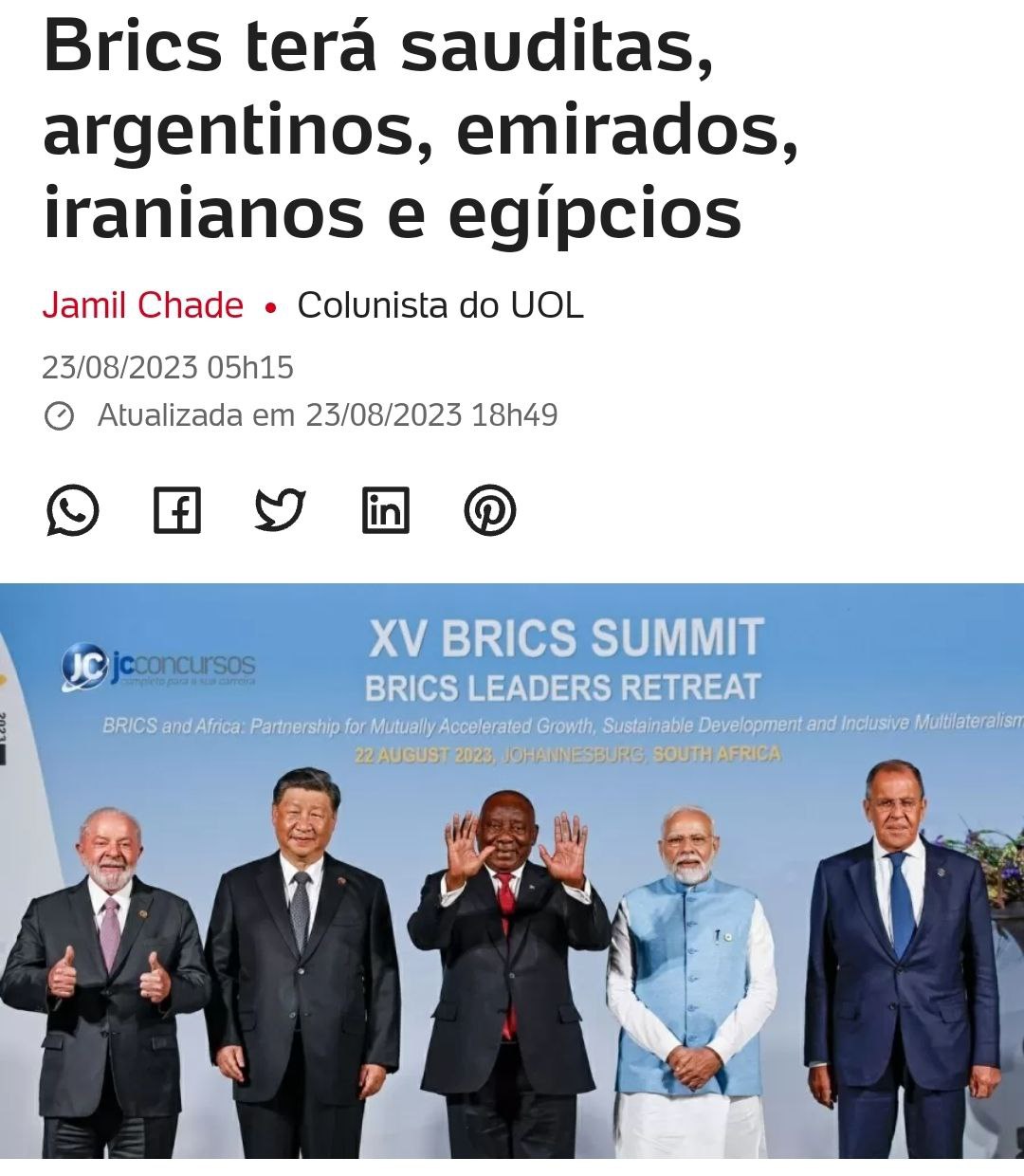 Бразильское издание UOL публикует список стран, которые будут приняты в БРИКС.