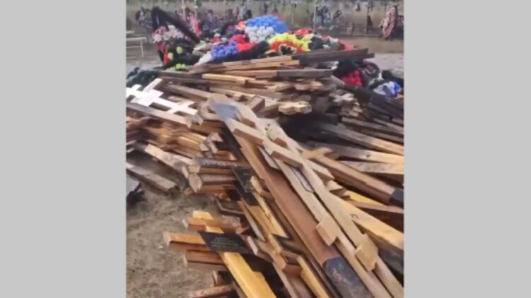 Работники кладбища рассказали, что "делают плановое благоустройство по заданию руководства". К сентябрю там хотят установить вместо крестов черные пирамидки с именами погибших.