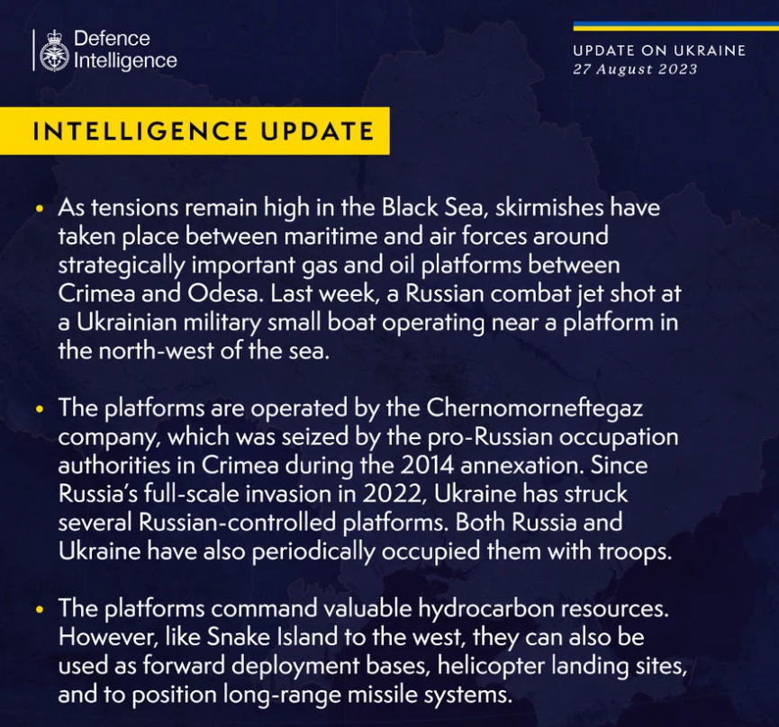 Поскольку напряженность в Черном море остается высокой, произошли стычки между морскими и воздушными силами вокруг стратегически важных газовых и нефтяных платформ между Крымом и Одессой, так называемых "вышек Бойко".