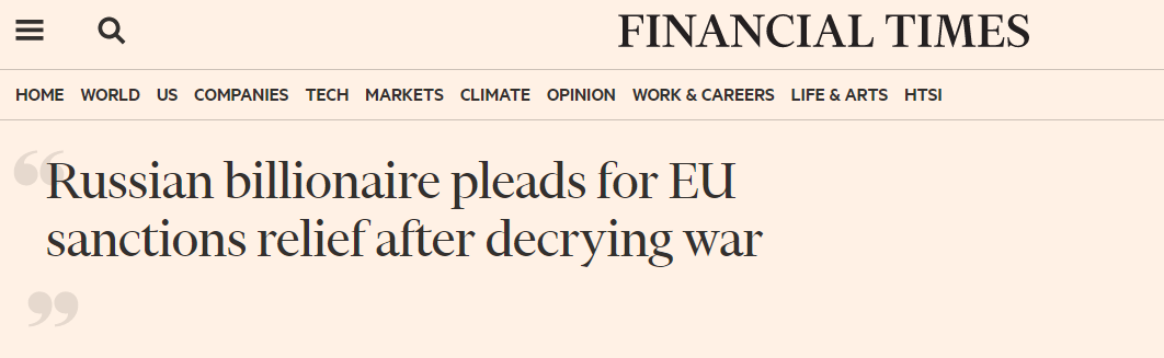 Российский олигарх и сооснователь "Яндекса" осудил войну в Украине и попросил ЕC снять с него санкции - FT