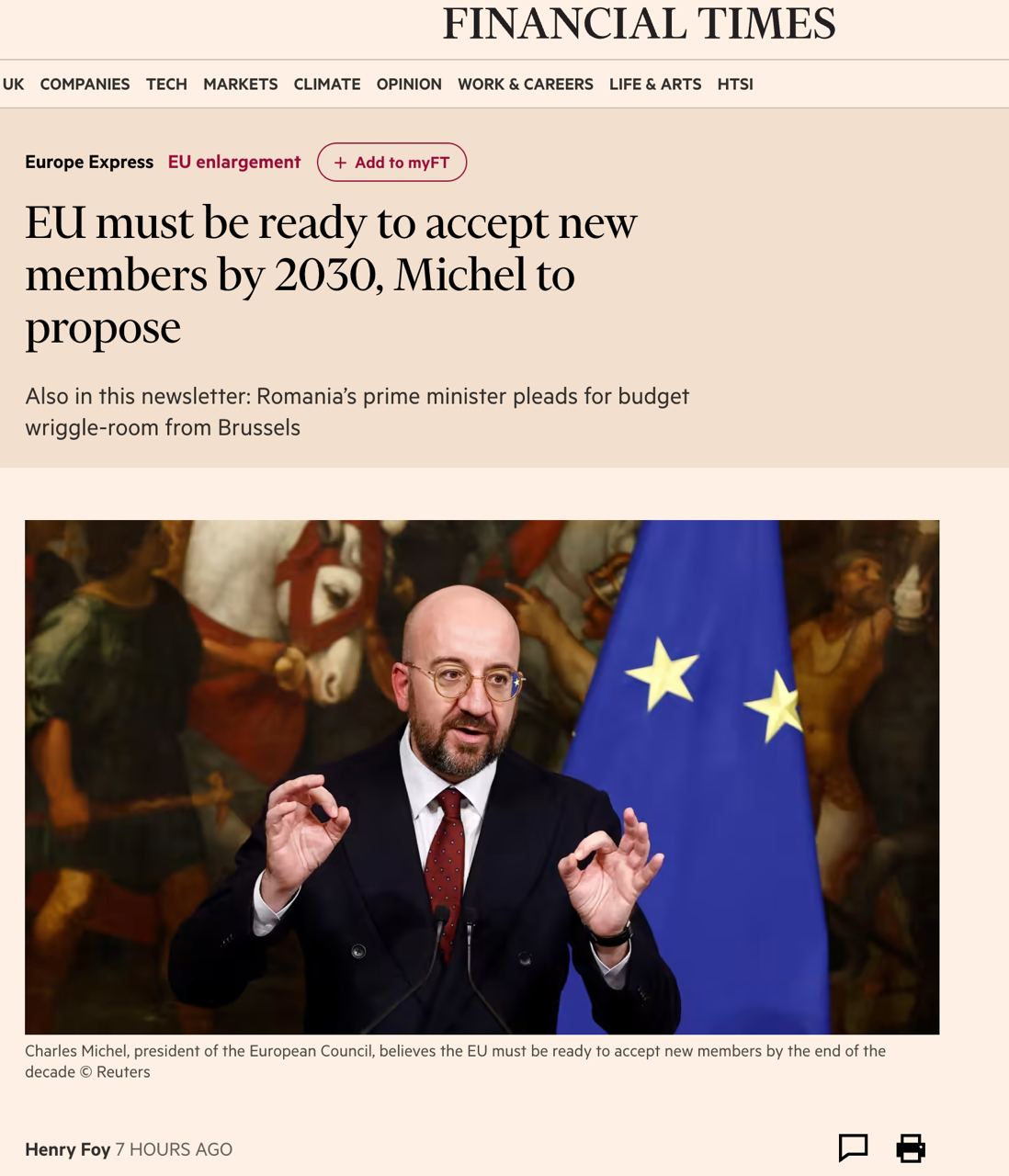 ЕС должен быть готов к принятию новых членов к 2030 году.