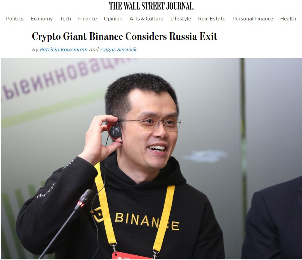 На прошлой неделе The Wall Street Journal утверждала, что Binance якобы помогает России с обходом санкции. После этого о прекращении работы с Binance сообщили платежные системы Mastercard и Visa.