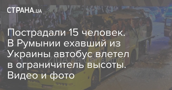 В румынском городе Новодари ехавший из Украины автобус Одесса - Констанца с 40 пассажирами влетел в ограничитель высоты. Пострадали 15 человек, в том числе двое детей.