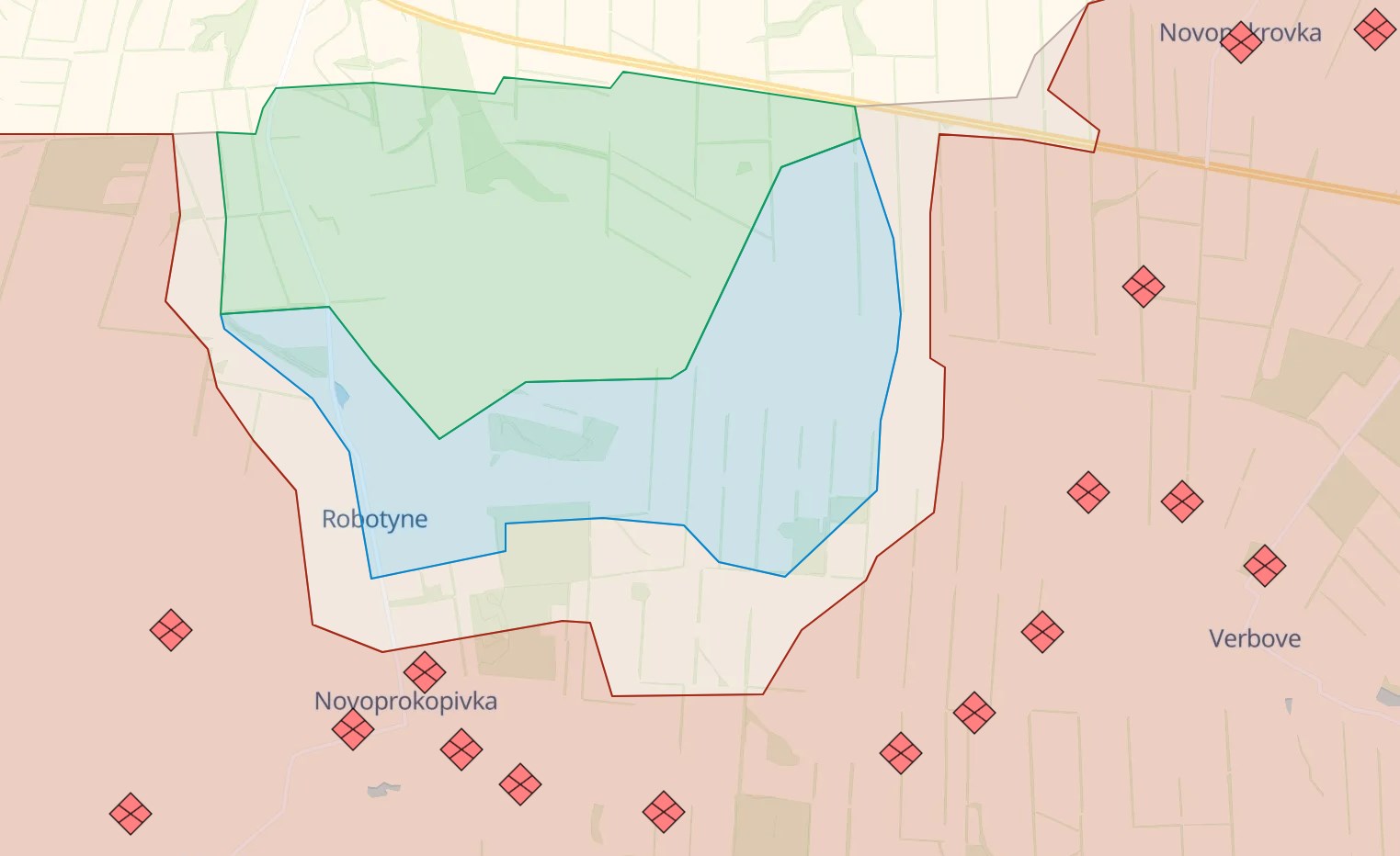 Последние дни основные новости об активности украинских сил идут между Работино и Вербовым. По ситуации в самом Работино по-прежнему идет разная информация. В Минобороны Украины вчера заявили об освобождении села. Российские паблики утверждают, что россияне удерживают его южные окраины.