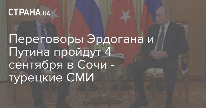 Переговоры президента Турции Реджепа Эрдогана и президента РФ Владимира Путина состоятся в Сочи 4 сентября.