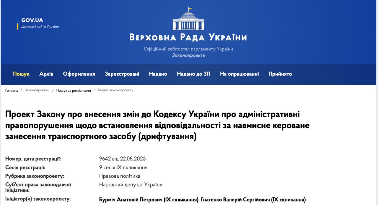 В Верховной Раде зарегистрировали законопроект, предлагающий ввести штрафы за дрифт. Зарегистрировали документ два депутата от запрещенной ОПЗЖ и Видродження.