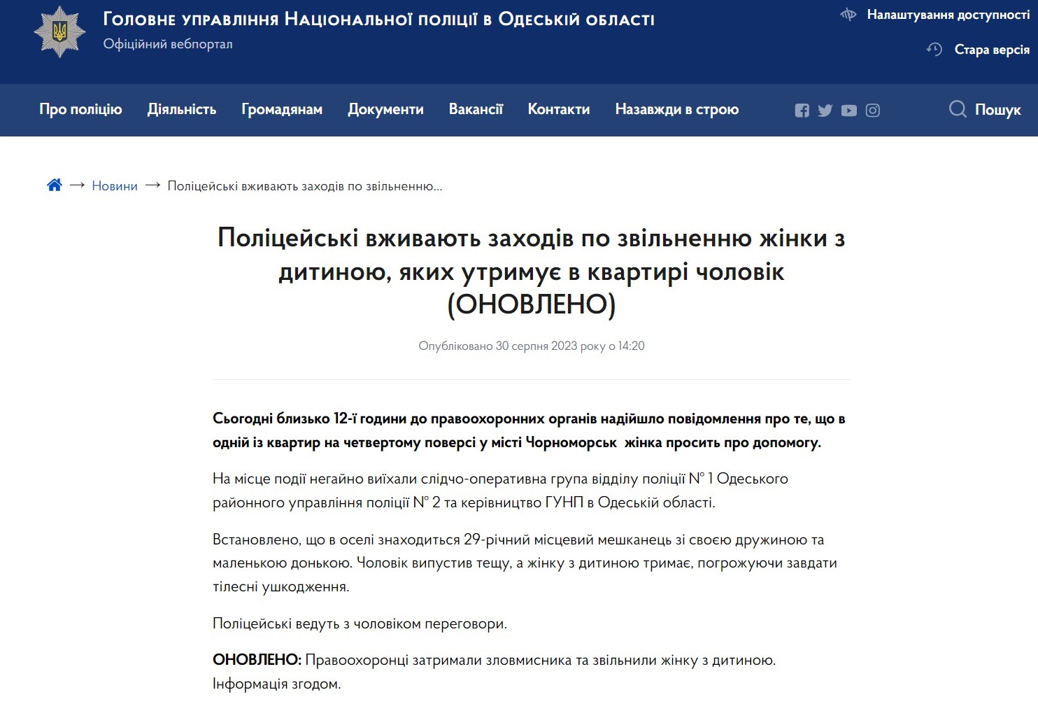 Спустя час после развязки стали известны новые подробности об истории в Черноморске.