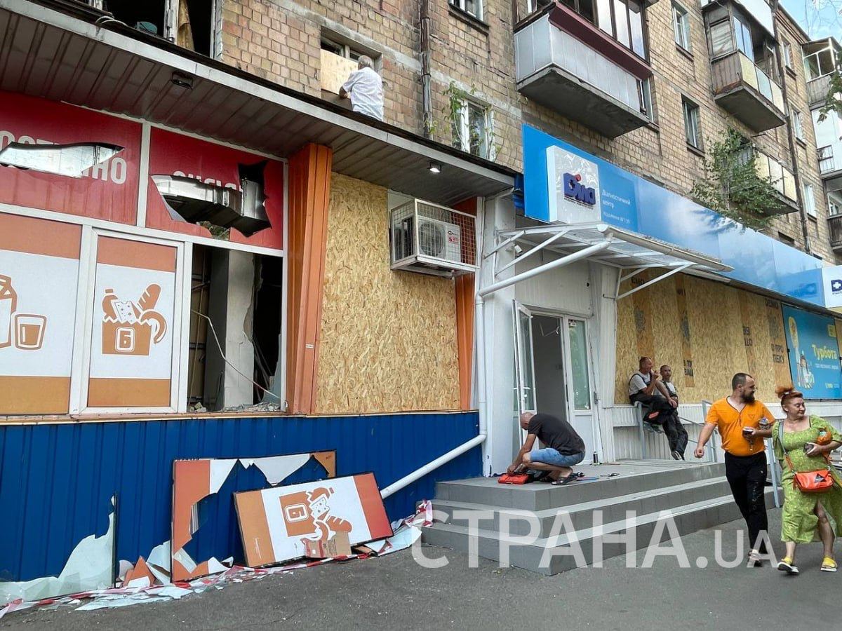 Выбитые окна, следы пожара. В Шевченковском районе Киева люди убирают последствия ночной ракетной атаки