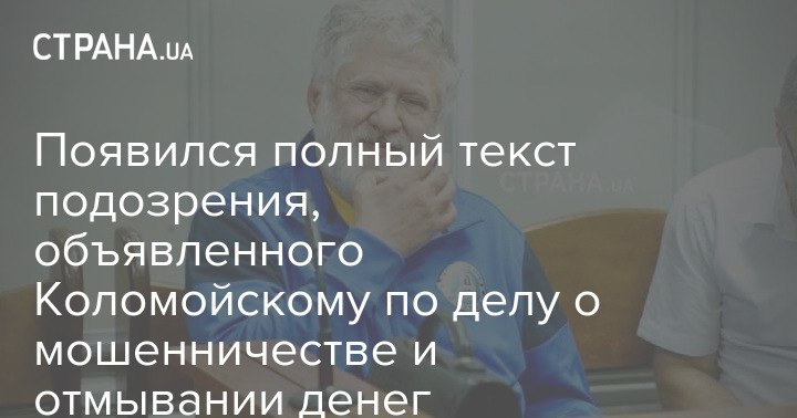 В сети появился полный текст подозрения бизнесмену Игорю Коломойскому, которого накануне суд арестовал на два месяца с правом выйти под полумиллиардный залог