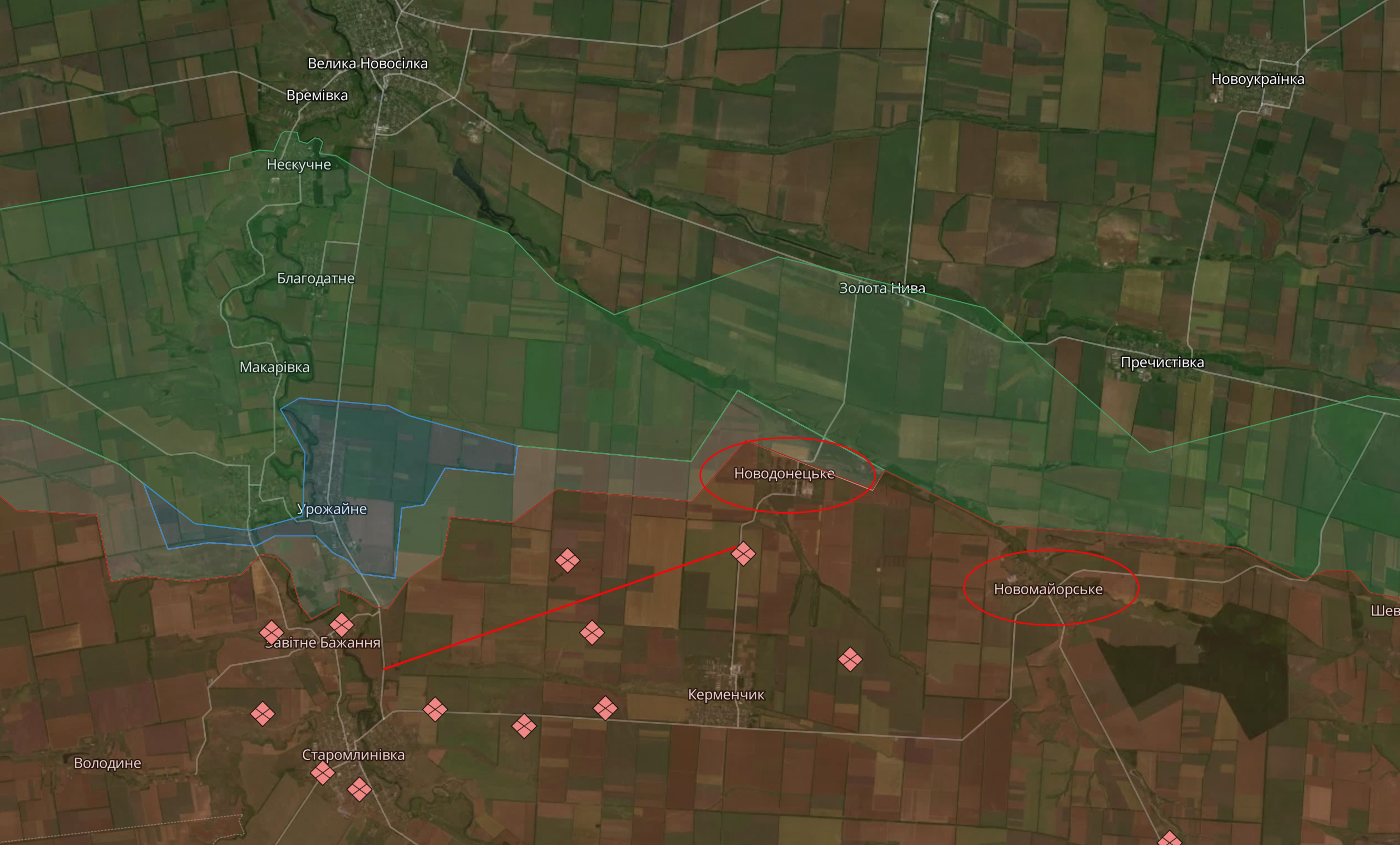 Из обоих поселков дороги ведут с востока на Старомлыновку, которая считается важной целью ВСУ на Бердянском направлении.