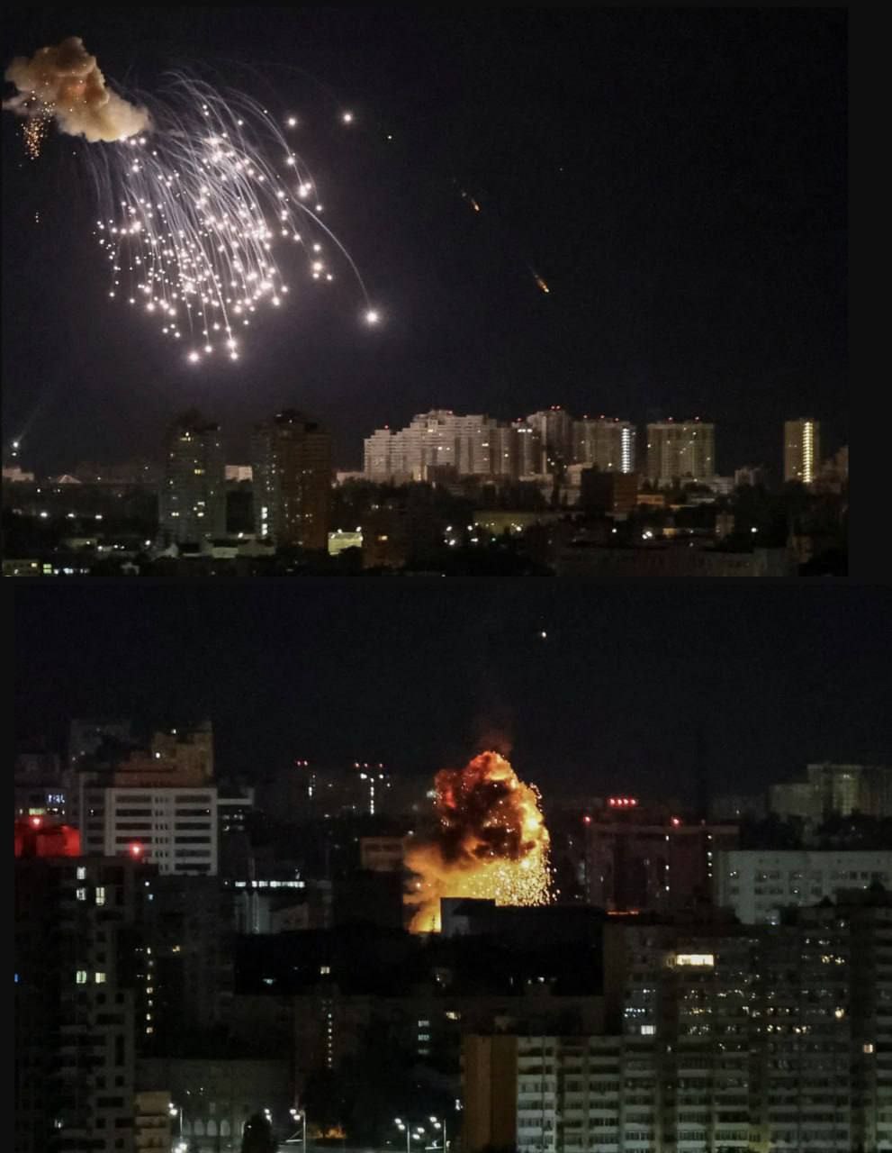 Также Reuters опубликовала фото ночной атаки дронов на Киев.