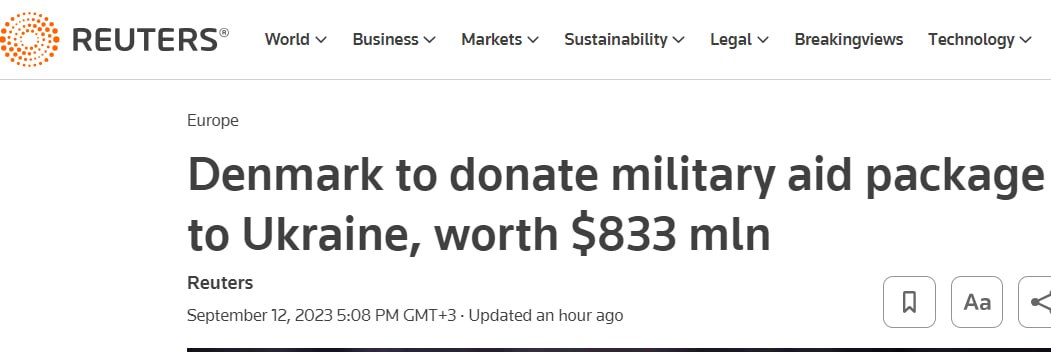 Дания передаст Украине пакет стоимостью 5,8 миллиарда датских крон (833 миллиона долларов). В него входят танки, боевые машины пехоты, танковые боеприпасы и зенитные пушки.