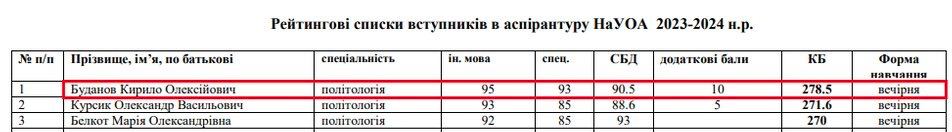 Глава Главного управления разведки (ГУР) Минобороны Кирилл Буданов, судя по всему, намерен писать кандидатскую диссертацию по политологии. Он поступает в аспирантуру ровенского университета "Острожская академия" по специальности "Политология".