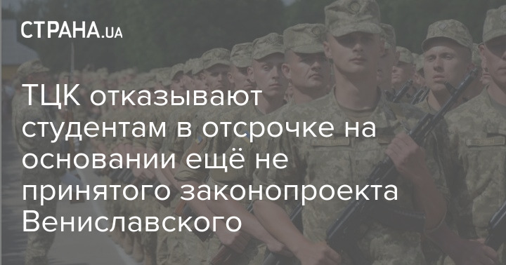 По её словам, Житомирский ТЦК отказал в отсрочке от мобилизации студенту магистратуры дневной формы обучения местного вуза, ссылаясь на проект Вениславского. Студенту вручили повестку и отправили его на медкомиссию.