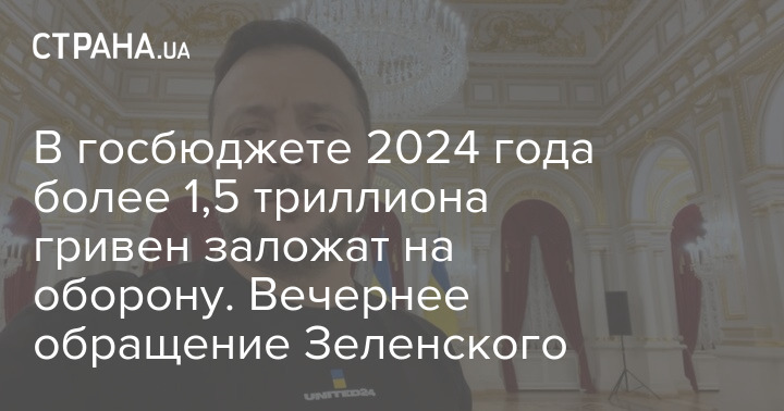 В госбюджете 2024 года более 1,5 триллиона гривен заложат на оборону. Вечернее обращение Зеленского