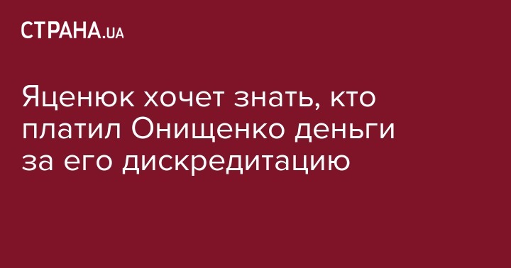 Лидер "Народного фронта" Арсений Яценюк хочет, чтобы НАБУ занялось расследованием заявлений Александра Онищенко - в части компании по дискредитации бывшего премьера. Об этом Яценюк заявил в эфире телеканала "Украина", передает "УНИАН".