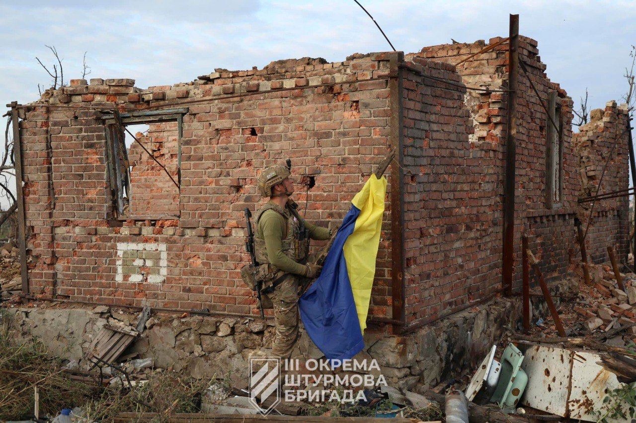 Третья отдельная штурмовая бригада подняла флаг Украины над Андреевкой. Фото: Генштаб